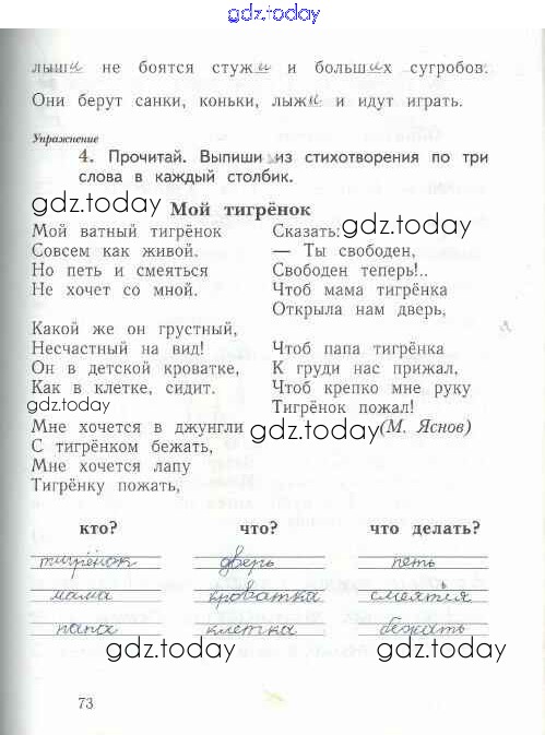 На страницах сайта gdz.today вы найдете учебный и вспомогательный материал, направленный на улучшения знаний школьной программы. ГДЗ - онлайн мир знаний Решение к тетради №1. Страницы 73 Рабочей тетради по Русскому языку для 1 класса Иванов, Евдокимова Вентана-граф Начальная школа XXI века 2016