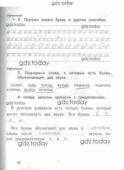 На страницах сайта gdz.today вы найдете учебный и вспомогательный материал, направленный на улучшения знаний школьной программы. ГДЗ - онлайн мир знаний Решение к тетради №1. Страницы 85 Рабочей тетради по Русскому языку для 1 класса Иванов, Евдокимова Вентана-граф Начальная школа XXI века 2016