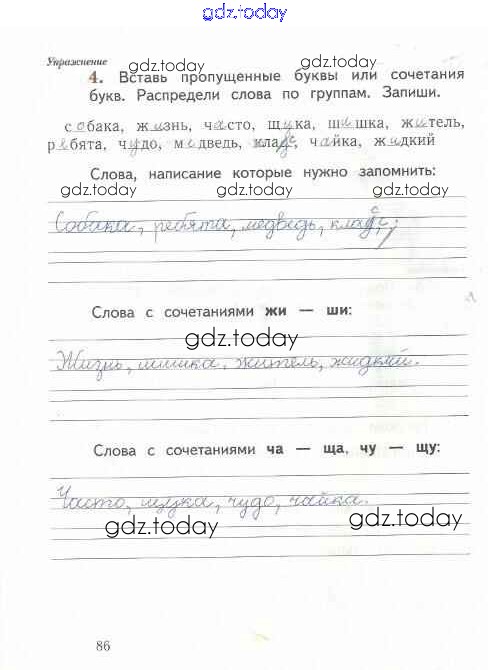 На страницах сайта gdz.today вы найдете учебный и вспомогательный материал, направленный на улучшения знаний школьной программы. ГДЗ - онлайн мир знаний Решение к тетради №1. Страницы 86 Рабочей тетради по Русскому языку для 1 класса Иванов, Евдокимова Вентана-граф Начальная школа XXI века 2016