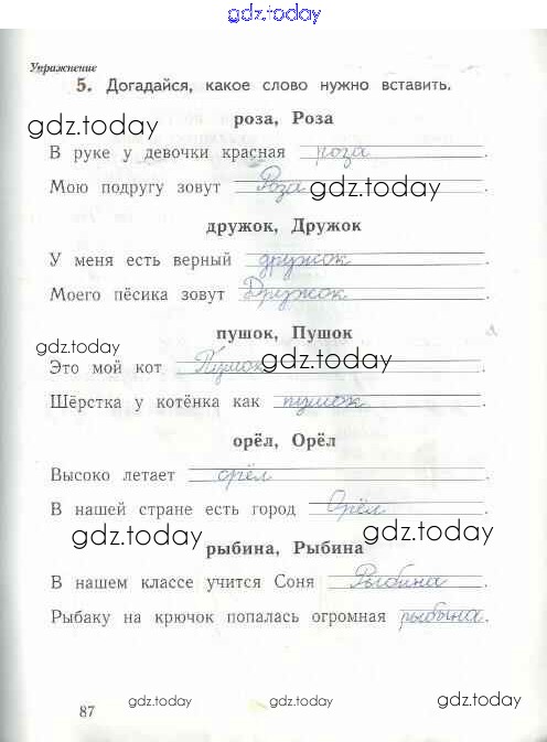 Ответы к Решение к тетради №1. Страницы 87 Рабочей тетради по Русскому языку для 1 класса Иванов, Евдокимова Вентана-граф Начальная школа XXI века 2016