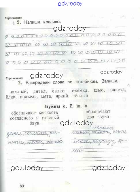 Ответы к Решение к тетради №1. Страницы 89 Рабочей тетради по Русскому языку для 1 класса Иванов, Евдокимова Вентана-граф Начальная школа XXI века 2016