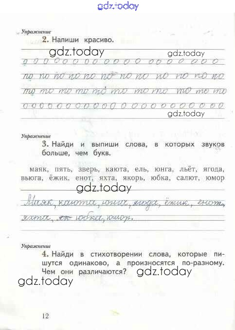 На страницах сайта gdz.today вы найдете учебный и вспомогательный материал, направленный на улучшения знаний школьной программы. ГДЗ - онлайн мир знаний Решение к тетради №2. Страницы 12 Рабочей тетради по Русскому языку для 1 класса Иванов, Евдокимова Вентана-граф Начальная школа XXI века 2016
