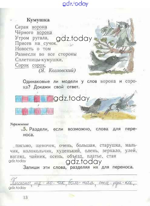 На страницах сайта gdz.today вы найдете учебный и вспомогательный материал, направленный на улучшения знаний школьной программы. ГДЗ - онлайн мир знаний Решение к тетради №2. Страницы 13 Рабочей тетради по Русскому языку для 1 класса Иванов, Евдокимова Вентана-граф Начальная школа XXI века 2016