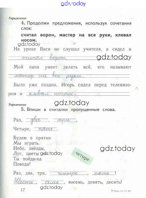 На страницах сайта gdz.today вы найдете учебный и вспомогательный материал, направленный на улучшения знаний школьной программы. ГДЗ - онлайн мир знаний Решение к тетради №2. Страницы 17 Рабочей тетради по Русскому языку для 1 класса Иванов, Евдокимова Вентана-граф Начальная школа XXI века 2016