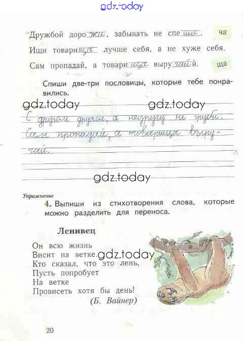 На страницах сайта gdz.today вы найдете учебный и вспомогательный материал, направленный на улучшения знаний школьной программы. ГДЗ - онлайн мир знаний Решение к тетради №2. Страницы 20 Рабочей тетради по Русскому языку для 1 класса Иванов, Евдокимова Вентана-граф Начальная школа XXI века 2016