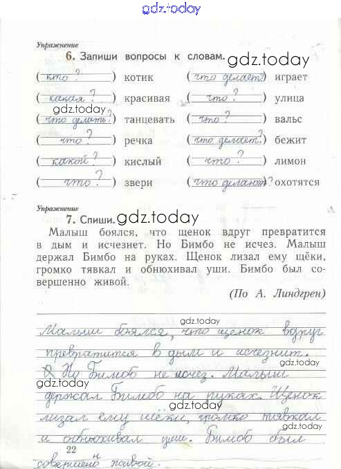 На страницах сайта gdz.today вы найдете учебный и вспомогательный материал, направленный на улучшения знаний школьной программы. ГДЗ - онлайн мир знаний Решение к тетради №2. Страницы 22 Рабочей тетради по Русскому языку для 1 класса Иванов, Евдокимова Вентана-граф Начальная школа XXI века 2016