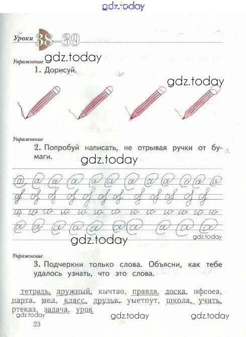 На страницах сайта gdz.today вы найдете учебный и вспомогательный материал, направленный на улучшения знаний школьной программы. ГДЗ - онлайн мир знаний Решение к тетради №2. Страницы 23 Рабочей тетради по Русскому языку для 1 класса Иванов, Евдокимова Вентана-граф Начальная школа XXI века 2016