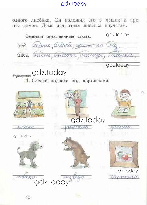 На страницах сайта gdz.today вы найдете учебный и вспомогательный материал, направленный на улучшения знаний школьной программы. ГДЗ - онлайн мир знаний Решение к тетради №2. Страницы 40 Рабочей тетради по Русскому языку для 1 класса Иванов, Евдокимова Вентана-граф Начальная школа XXI века 2016