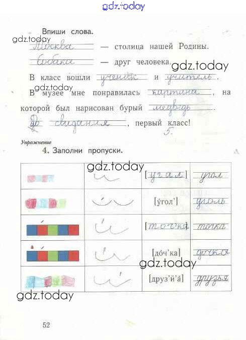 На страницах сайта gdz.today вы найдете учебный и вспомогательный материал, направленный на улучшения знаний школьной программы. ГДЗ - онлайн мир знаний Решение к тетради №2. Страницы 52 Рабочей тетради по Русскому языку для 1 класса Иванов, Евдокимова Вентана-граф Начальная школа XXI века 2016