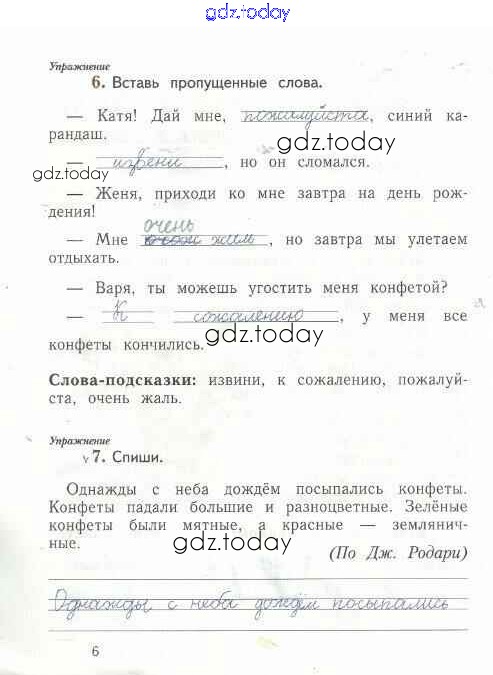 На страницах сайта gdz.today вы найдете учебный и вспомогательный материал, направленный на улучшения знаний школьной программы. ГДЗ - онлайн мир знаний Решение к тетради №2. Страницы 6 Рабочей тетради по Русскому языку для 1 класса Иванов, Евдокимова Вентана-граф Начальная школа XXI века 2016