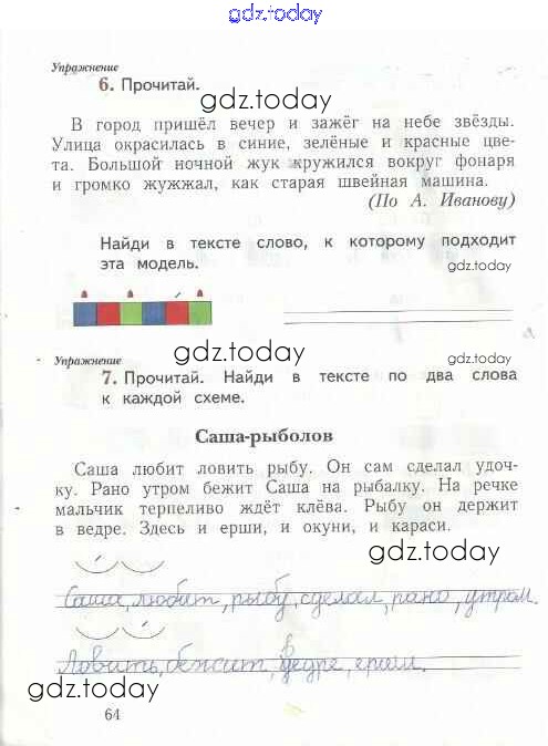 На страницах сайта gdz.today вы найдете учебный и вспомогательный материал, направленный на улучшения знаний школьной программы. ГДЗ - онлайн мир знаний Решение к тетради №2. Страницы 64 Рабочей тетради по Русскому языку для 1 класса Иванов, Евдокимова Вентана-граф Начальная школа XXI века 2016