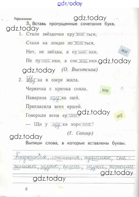 На страницах сайта gdz.today вы найдете учебный и вспомогательный материал, направленный на улучшения знаний школьной программы. ГДЗ - онлайн мир знаний Решение к тетради №2. Страницы 8 Рабочей тетради по Русскому языку для 1 класса Иванов, Евдокимова Вентана-граф Начальная школа XXI века 2016
