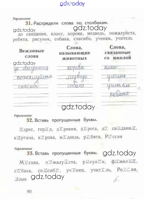 На страницах сайта gdz.today вы найдете учебный и вспомогательный материал, направленный на улучшения знаний школьной программы. ГДЗ - онлайн мир знаний Решение к тетради №2. Страницы 80 Рабочей тетради по Русскому языку для 1 класса Иванов, Евдокимова Вентана-граф Начальная школа XXI века 2016