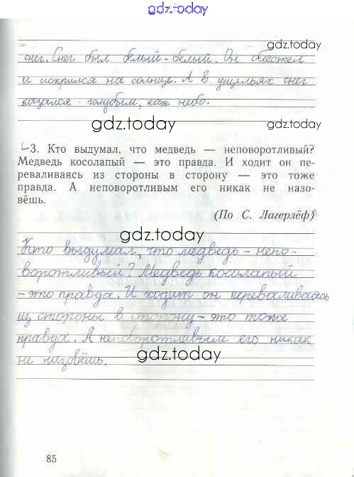 На страницах сайта gdz.today вы найдете учебный и вспомогательный материал, направленный на улучшения знаний школьной программы. ГДЗ - онлайн мир знаний Решение к тетради №2. Страницы 85 Рабочей тетради по Русскому языку для 1 класса Иванов, Евдокимова Вентана-граф Начальная школа XXI века 2016