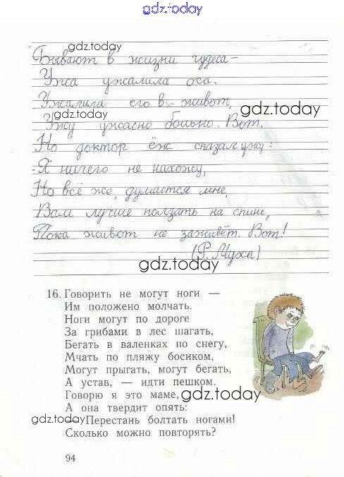 На страницах сайта gdz.today вы найдете учебный и вспомогательный материал, направленный на улучшения знаний школьной программы. ГДЗ - онлайн мир знаний Решение к тетради №2. Страницы 94 Рабочей тетради по Русскому языку для 1 класса Иванов, Евдокимова Вентана-граф Начальная школа XXI века 2016