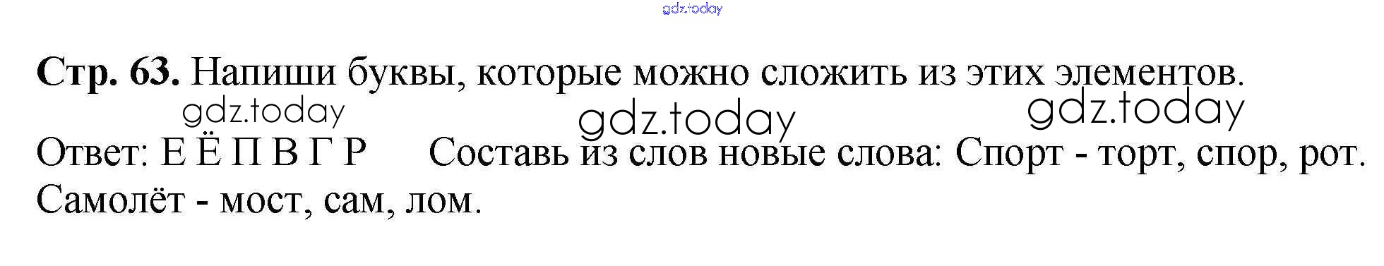 Ответы к Решение к части 1. Страницы 63 Прописям по Русскому языку для 1 класса Климанова, Абрамов Просвещение Перспектива 2021