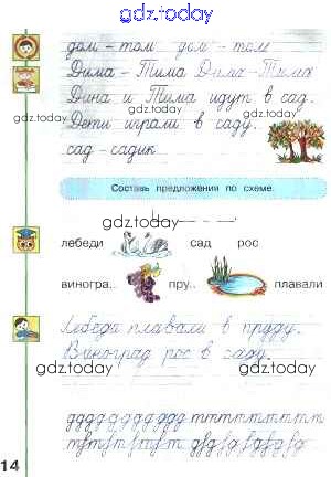 На страницах сайта gdz.today вы найдете учебный и вспомогательный материал, направленный на улучшения знаний школьной программы. ГДЗ - онлайн мир знаний Решение к части 2. Страницы 14 Прописям по Русскому языку для 1 класса Климанова, Абрамов Просвещение Перспектива 2021
