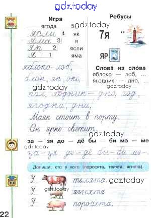 Ответы к Решение к части 2. Страницы 22 Прописям по Русскому языку для 1 класса Климанова, Абрамов Просвещение Перспектива 2021