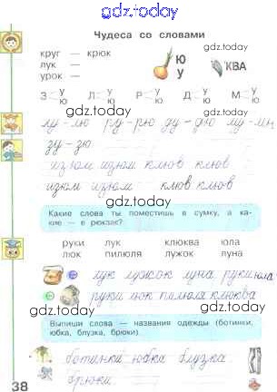 На страницах сайта gdz.today вы найдете учебный и вспомогательный материал, направленный на улучшения знаний школьной программы. ГДЗ - онлайн мир знаний Решение к части 2. Страницы 38 Прописям по Русскому языку для 1 класса Климанова, Абрамов Просвещение Перспектива 2021