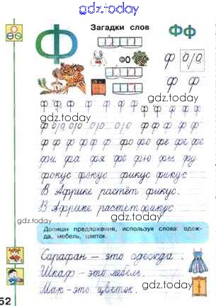 На страницах сайта gdz.today вы найдете учебный и вспомогательный материал, направленный на улучшения знаний школьной программы. ГДЗ - онлайн мир знаний Решение к части 2. Страницы 52 Прописям по Русскому языку для 1 класса Климанова, Абрамов Просвещение Перспектива 2021
