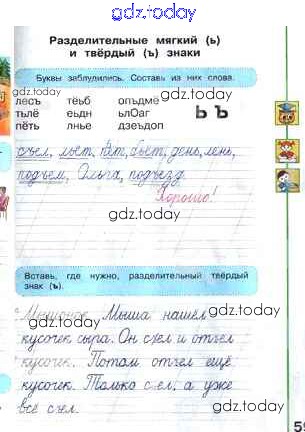 На страницах сайта gdz.today вы найдете учебный и вспомогательный материал, направленный на улучшения знаний школьной программы. ГДЗ - онлайн мир знаний Решение к части 2. Страницы 59 Прописям по Русскому языку для 1 класса Климанова, Абрамов Просвещение Перспектива 2021