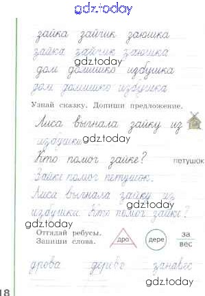 На страницах сайта gdz.today вы найдете учебный и вспомогательный материал, направленный на улучшения знаний школьной программы. ГДЗ - онлайн мир знаний Страницы (решение)  18 Рабочей тетради по Русскому языку для 1 класса Климанова, Абрамов  Просвещение Перспектива 2021