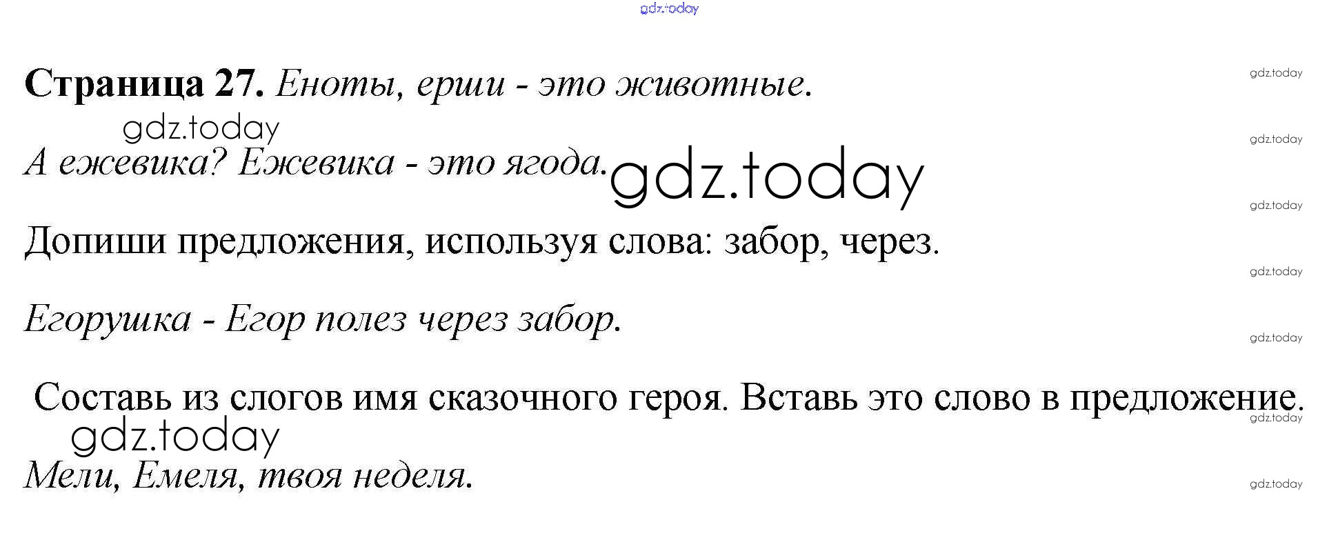На страницах сайта gdz.today вы найдете учебный и вспомогательный материал, направленный на улучшения знаний школьной программы. ГДЗ - онлайн мир знаний Страницы (решение)  27 Рабочей тетради по Русскому языку для 1 класса Климанова, Абрамов  Просвещение Перспектива 2021