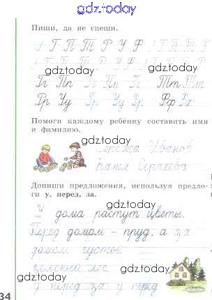 На страницах сайта gdz.today вы найдете учебный и вспомогательный материал, направленный на улучшения знаний школьной программы. ГДЗ - онлайн мир знаний Страницы (решение)  34 Рабочей тетради по Русскому языку для 1 класса Климанова, Абрамов  Просвещение Перспектива 2021