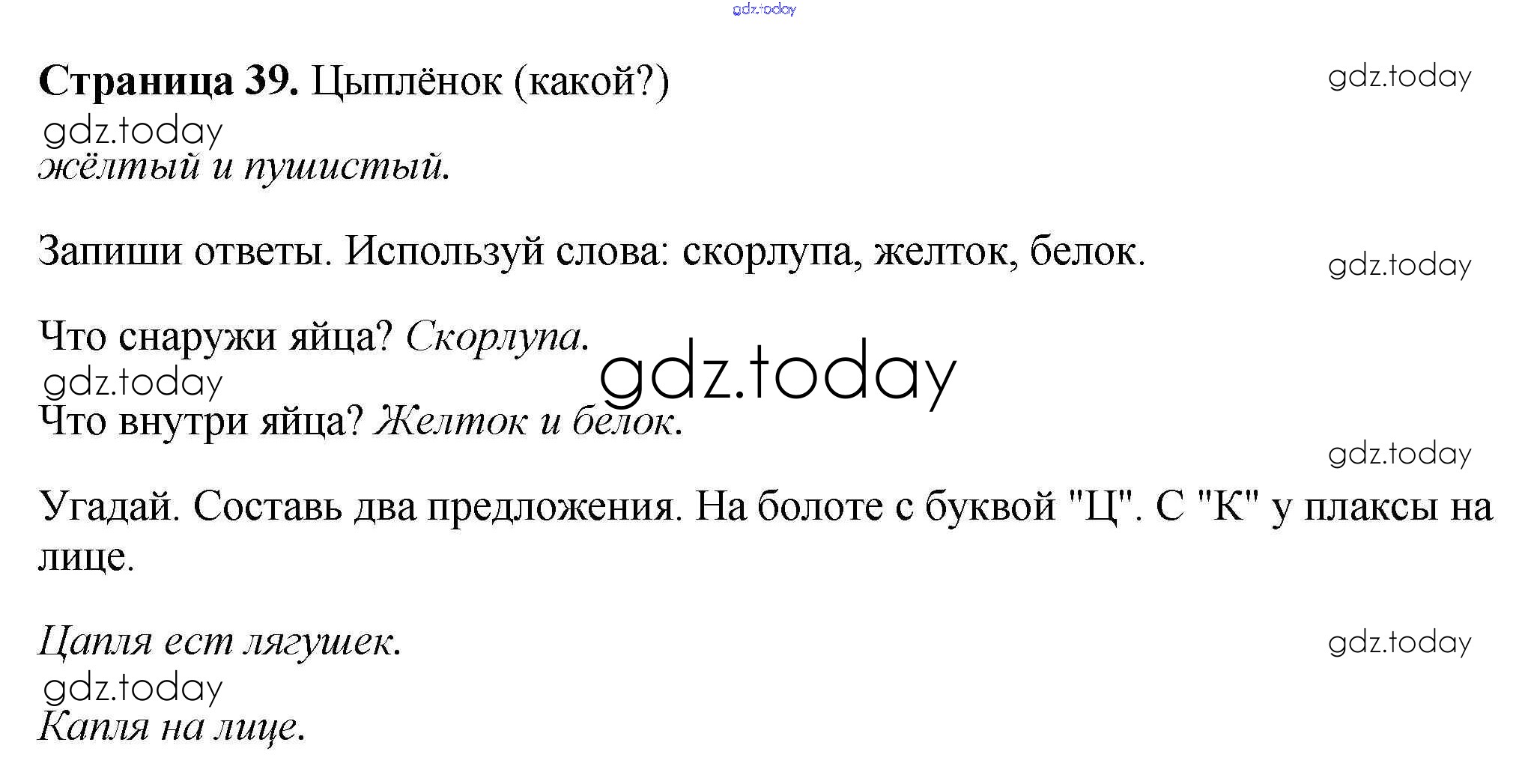 На страницах сайта gdz.today вы найдете учебный и вспомогательный материал, направленный на улучшения знаний школьной программы. ГДЗ - онлайн мир знаний Страницы (решение)  39 Рабочей тетради по Русскому языку для 1 класса Климанова, Абрамов  Просвещение Перспектива 2021