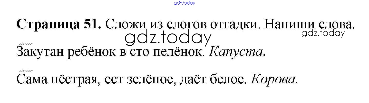 На страницах сайта gdz.today вы найдете учебный и вспомогательный материал, направленный на улучшения знаний школьной программы. ГДЗ - онлайн мир знаний Страницы (решение)  51 Рабочей тетради по Русскому языку для 1 класса Климанова, Абрамов  Просвещение Перспектива 2021