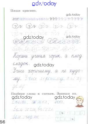 На страницах сайта gdz.today вы найдете учебный и вспомогательный материал, направленный на улучшения знаний школьной программы. ГДЗ - онлайн мир знаний Страницы (решение)  56 Рабочей тетради по Русскому языку для 1 класса Климанова, Абрамов  Просвещение Перспектива 2021