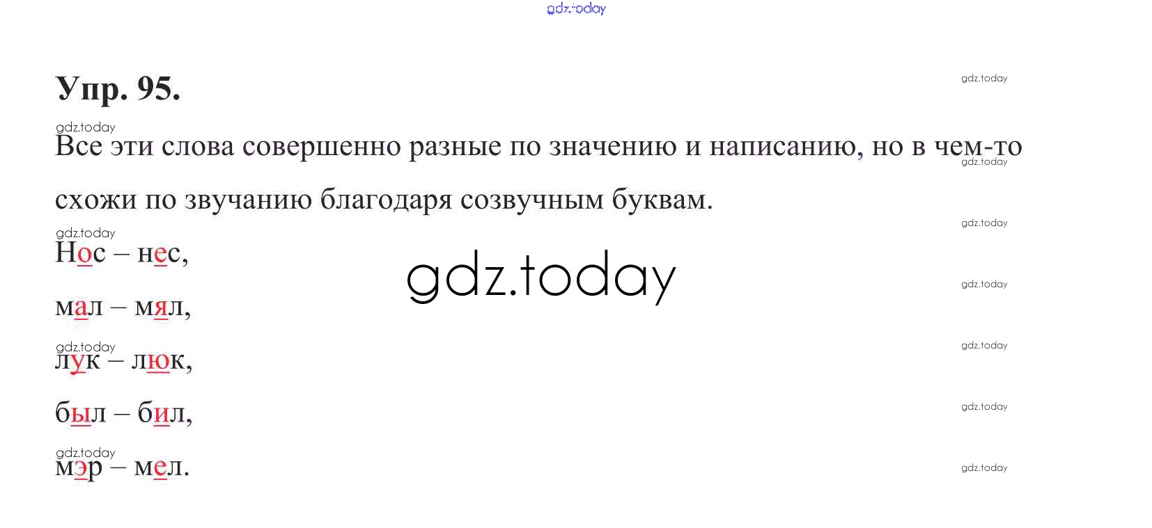 Ответы к Решение к теме 10. Гласные звуки. Обозначение их буквами Упр. 95 Учебнику по Русскому языку для 1 класса Климанова, Макеева Просвещение Перспектива 2011