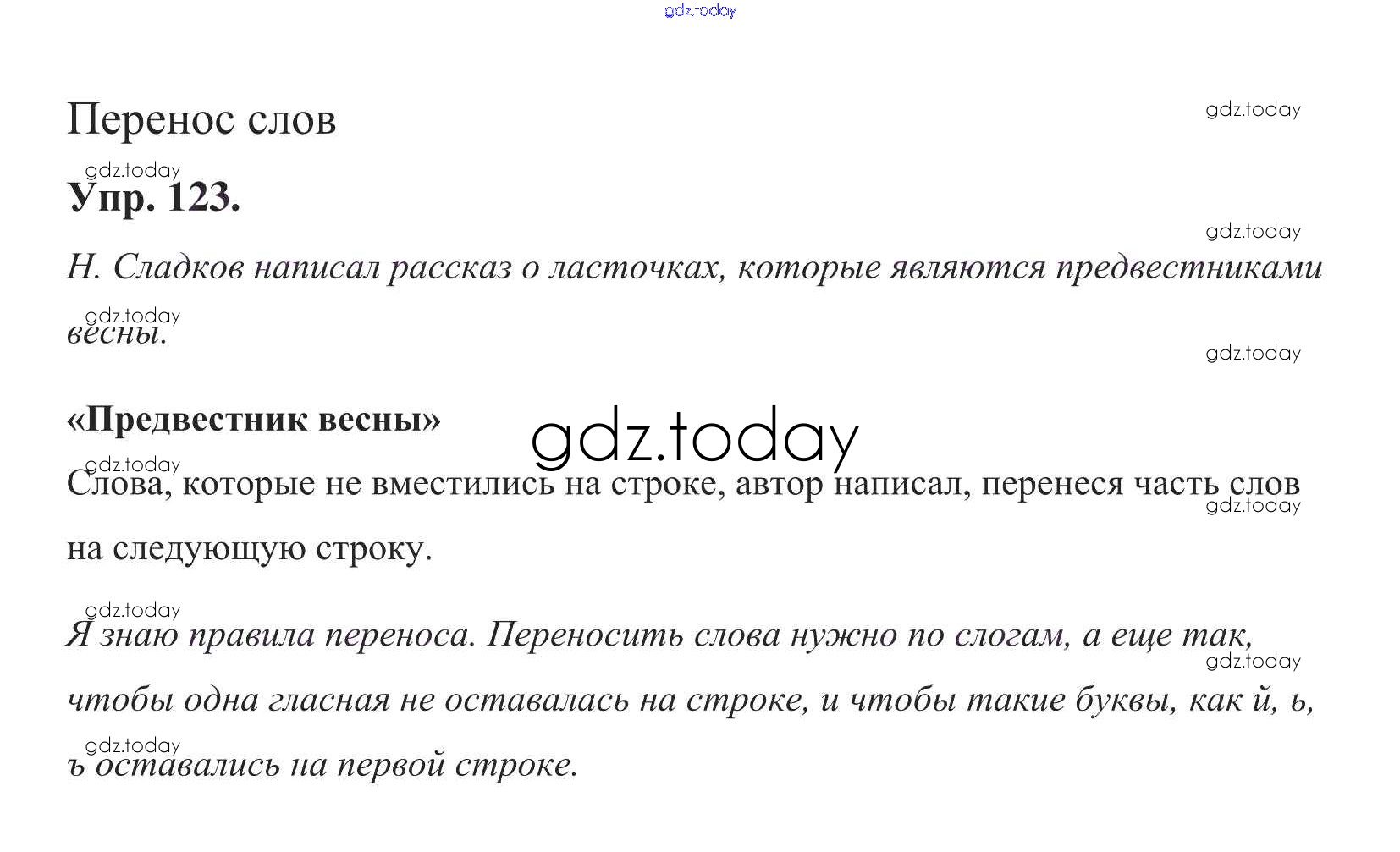 На страницах сайта gdz.today вы найдете учебный и вспомогательный материал, направленный на улучшения знаний школьной программы. ГДЗ - онлайн мир знаний Решение к теме 13. Перенос слов Упр. 123 Учебнику по Русскому языку для 1 класса Климанова, Макеева Просвещение Перспектива 2011