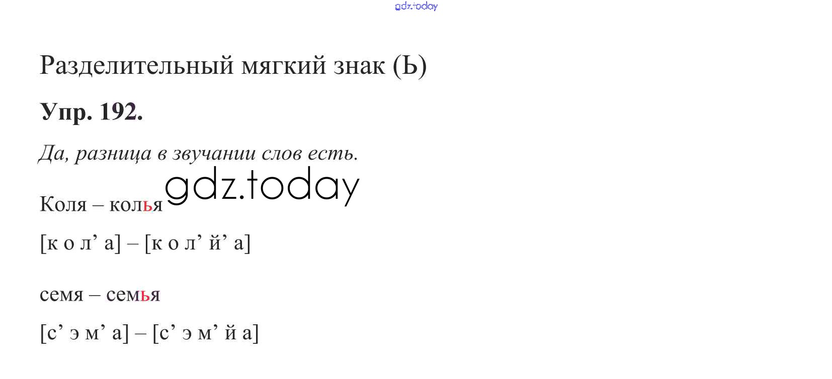 Ответы к Решение к теме 18. Разделительный мягкий знак (Ь) Упр. 192 Учебнику по Русскому языку для 1 класса Климанова, Макеева Просвещение Перспектива 2011