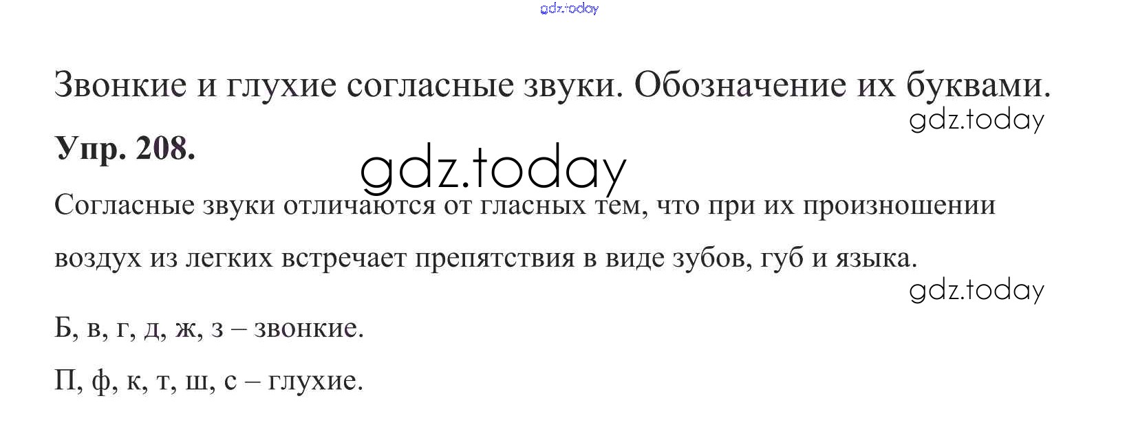 Ответы к Решение к теме 20. Звонкие и глухие согласные звуки Упр. 208 Учебнику по Русскому языку для 1 класса Климанова, Макеева Просвещение Перспектива 2011