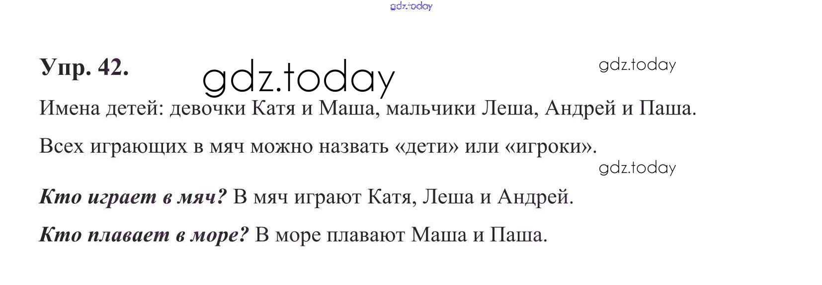 На страницах сайта gdz.today вы найдете учебный и вспомогательный материал, направленный на улучшения знаний школьной программы. ГДЗ - онлайн мир знаний Решение к теме 4. Имя собственное Упр. 42 Учебнику по Русскому языку для 1 класса Климанова, Макеева Просвещение Перспектива 2011