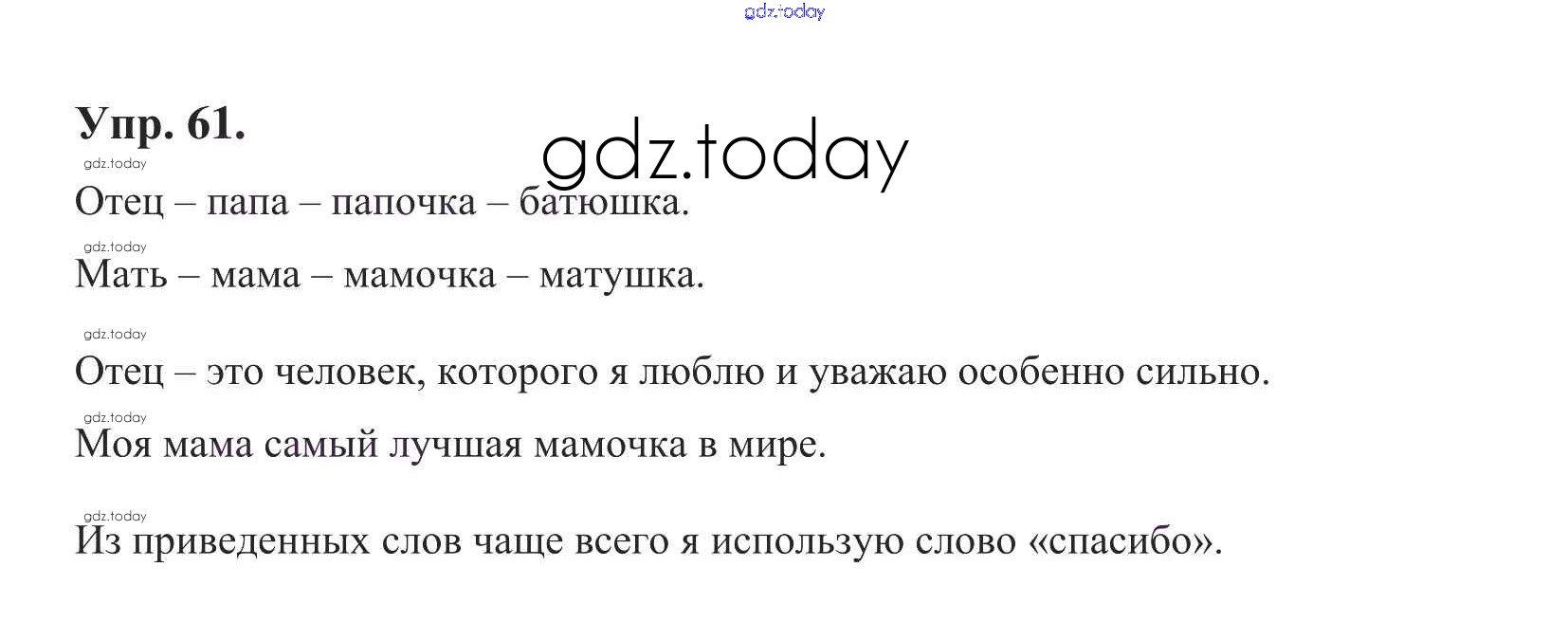 На страницах сайта gdz.today вы найдете учебный и вспомогательный материал, направленный на улучшения знаний школьной программы. ГДЗ - онлайн мир знаний Решение к теме 6. Слова, близкие и противоположные по значению Упр. 61 Учебнику по Русскому языку для 1 класса Климанова, Макеева Просвещение Перспектива 2011
