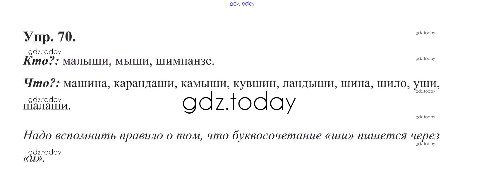 На страницах сайта gdz.today вы найдете учебный и вспомогательный материал, направленный на улучшения знаний школьной программы. ГДЗ - онлайн мир знаний Решение к теме 7. Группы слов Упр. 70 Учебнику по Русскому языку для 1 класса Климанова, Макеева Просвещение Перспектива 2011