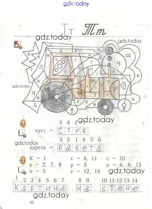 На страницах сайта gdz.today вы найдете учебный и вспомогательный материал, направленный на улучшения знаний школьной программы. ГДЗ - онлайн мир знаний Страницы (решение) 42 Рабочей тетради по Русскому языку для 1 класса Кузнецова Вентана-граф 2020