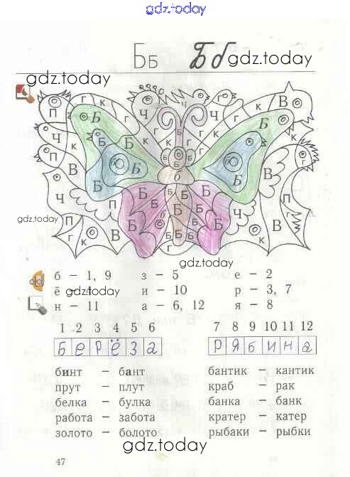 Ответы к Страницы (решение) 47 Рабочей тетради по Русскому языку для 1 класса Кузнецова Вентана-граф 2020