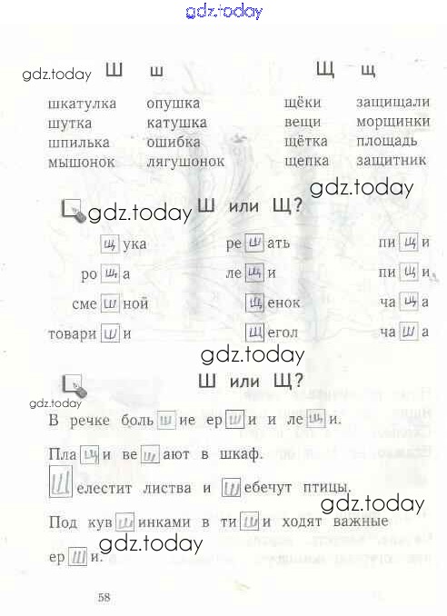 Ответы к Страницы (решение) 58 Рабочей тетради по Русскому языку для 1 класса Кузнецова Вентана-граф 2020