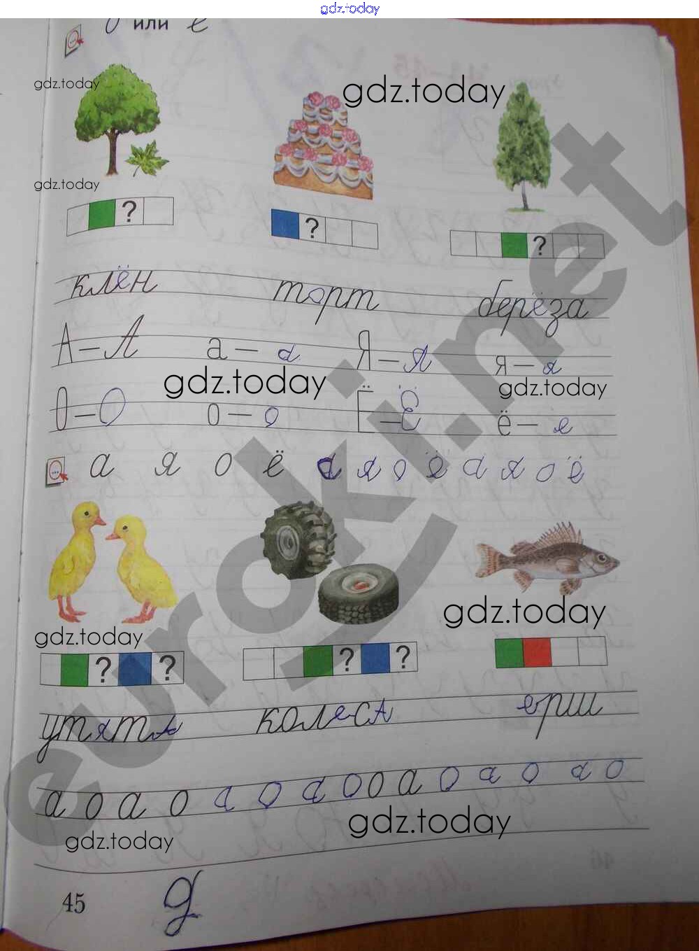 Ответы к Часть 1. Страницы 45 Рабочей тетради по Русскому языку для 1 класса Безруких, Кузнецова Вентана-граф УМК 2019