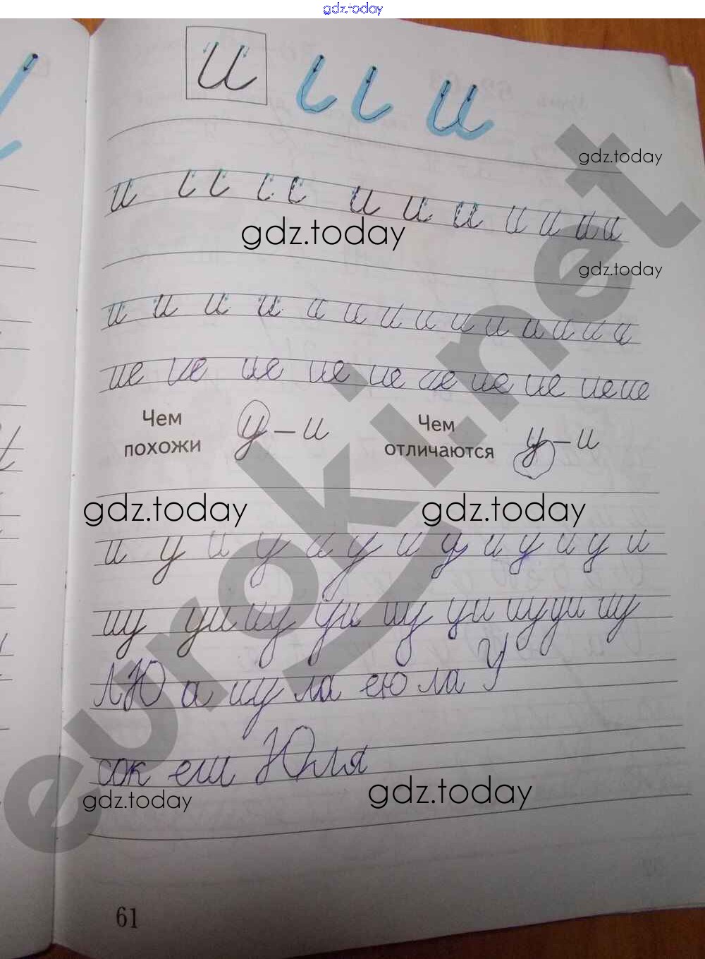 На страницах сайта gdz.today вы найдете учебный и вспомогательный материал, направленный на улучшения знаний школьной программы. ГДЗ - онлайн мир знаний Часть 1. Страницы 61 Рабочей тетради по Русскому языку для 1 класса Безруких, Кузнецова Вентана-граф УМК 2019