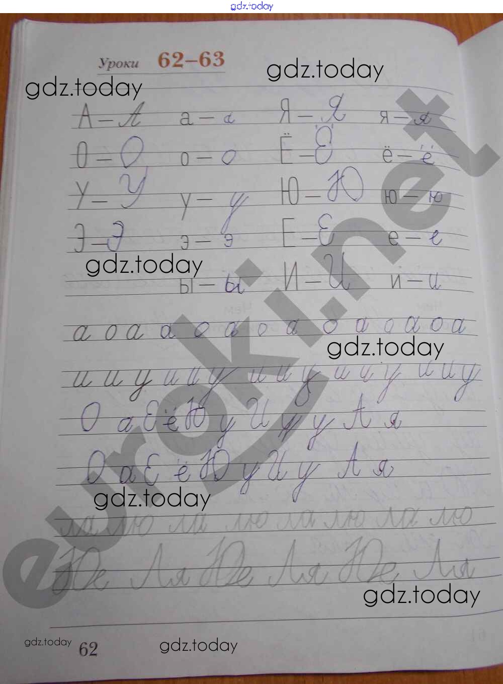 Ответы к Часть 1. Страницы 62 Рабочей тетради по Русскому языку для 1 класса Безруких, Кузнецова Вентана-граф УМК 2019