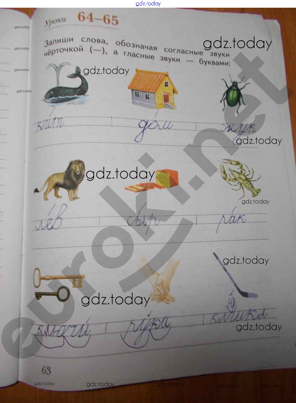 Ответы к Часть 1. Страницы 63 Рабочей тетради по Русскому языку для 1 класса Безруких, Кузнецова Вентана-граф УМК 2019