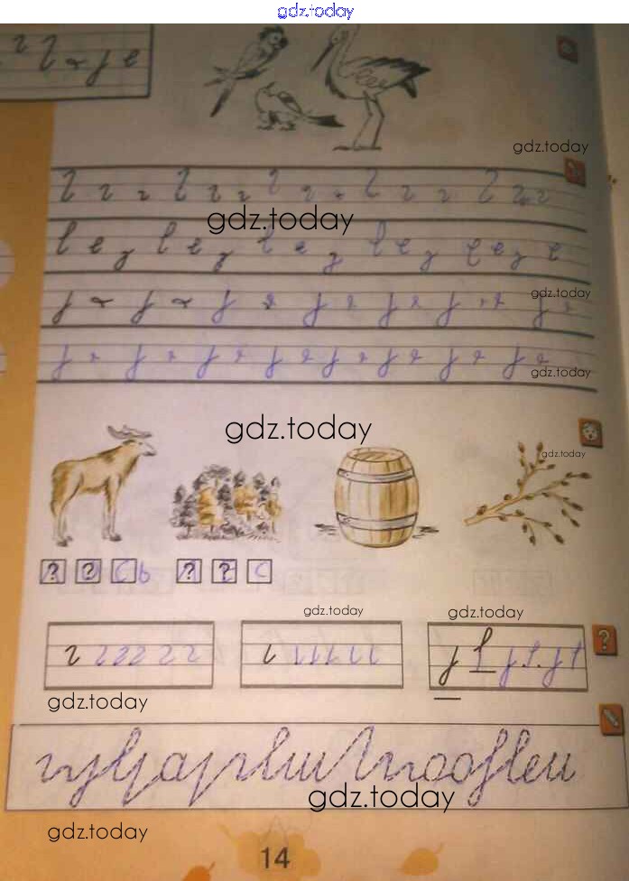 На страницах сайта gdz.today вы найдете учебный и вспомогательный материал, направленный на улучшения знаний школьной программы. ГДЗ - онлайн мир знаний Решение к тетради №1. Страницы  14 Тетради по письму по Русскому языку для 1 класса Агаркова  Вита-Пресс  2019