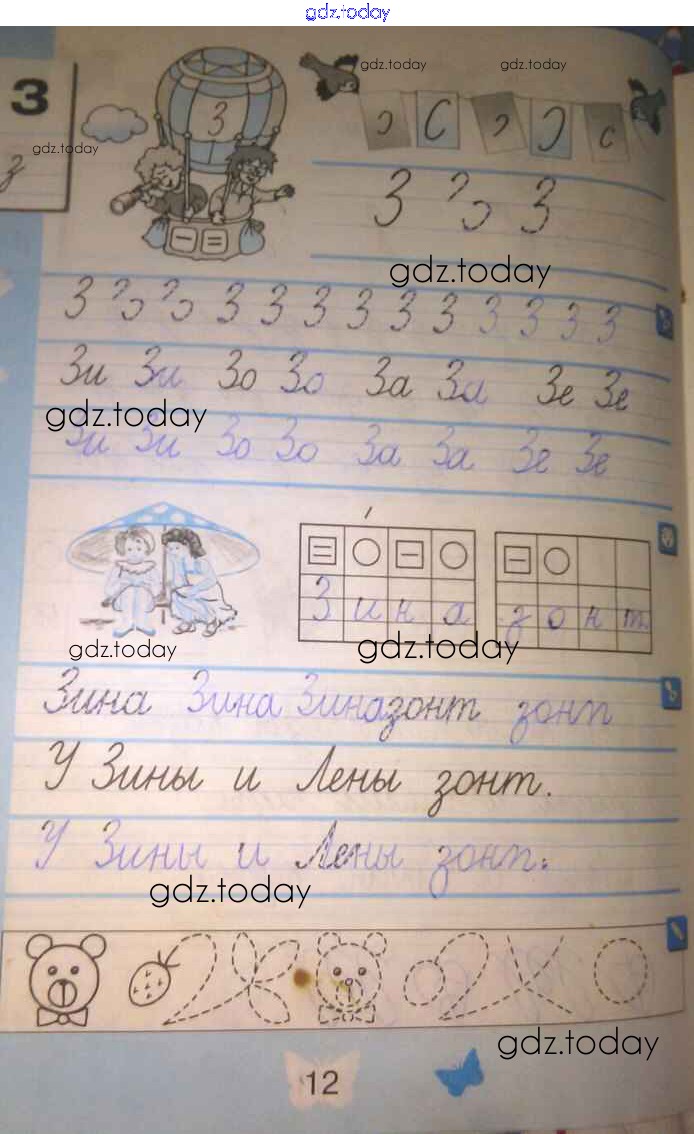 На страницах сайта gdz.today вы найдете учебный и вспомогательный материал, направленный на улучшения знаний школьной программы. ГДЗ - онлайн мир знаний Решение к тетради №3. Страницы 12 Тетради по письму по Русскому языку для 1 класса Агаркова Вита-Пресс 2019