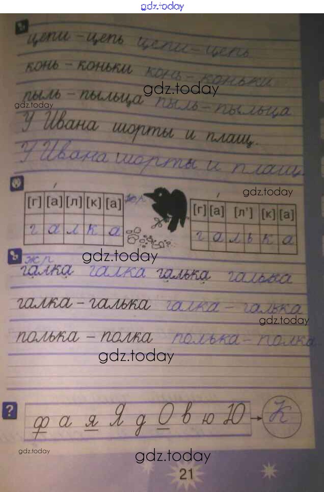 Ответы к Решение к тетради №4. Страницы  21 Тетради по письму по Русскому языку для 1 класса Агаркова  Вита-Пресс  2019