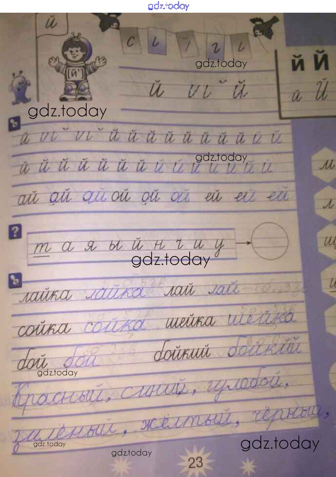 На страницах сайта gdz.today вы найдете учебный и вспомогательный материал, направленный на улучшения знаний школьной программы. ГДЗ - онлайн мир знаний Решение к тетради №4. Страницы  23 Тетради по письму по Русскому языку для 1 класса Агаркова  Вита-Пресс  2019