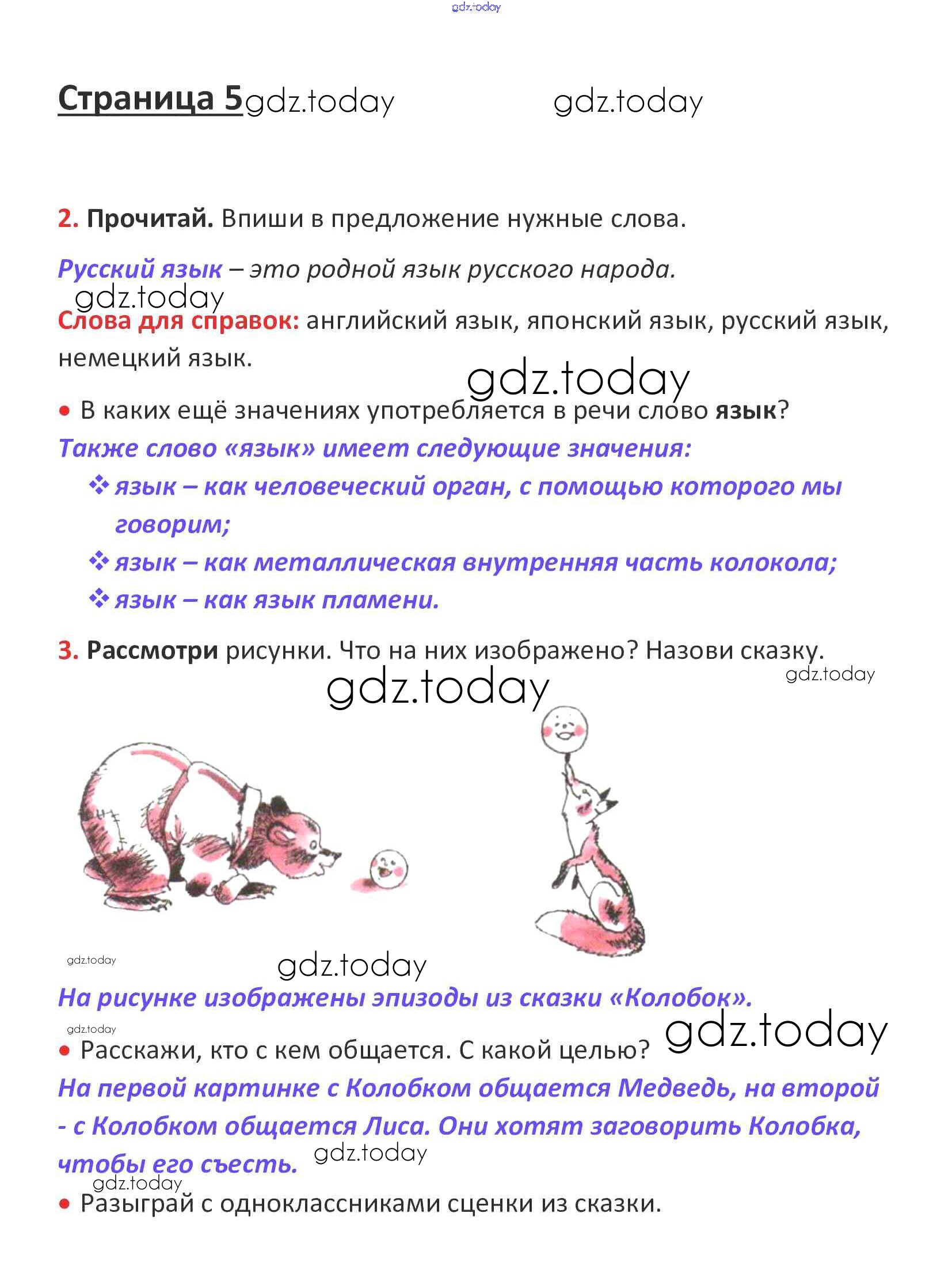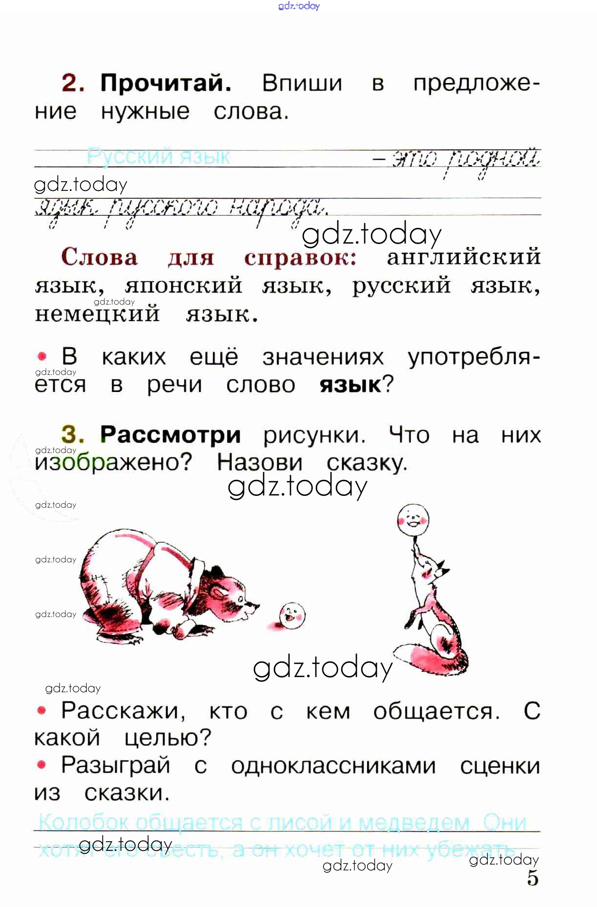 На страницах сайта gdz.today вы найдете учебный и вспомогательный материал, направленный на улучшения знаний школьной программы. ГДЗ - онлайн мир знаний Решение. Глава 1. Наша речь  стр. 5 Рабочей тетради по Русскому языку для 1 класса Канакина, Горецкий  Просвещение Школа России 2013